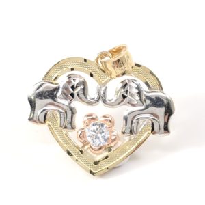 Heart shaped jewelry with elephant, flower and cubic zirconia. This...