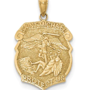 14K Yellow Gold Saint Michael Medal Badge Pendant Small