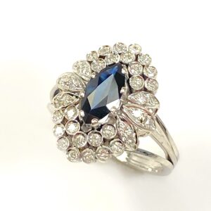 19K White Gold Sapphire & Diamond Cluster Cocktail Ring
